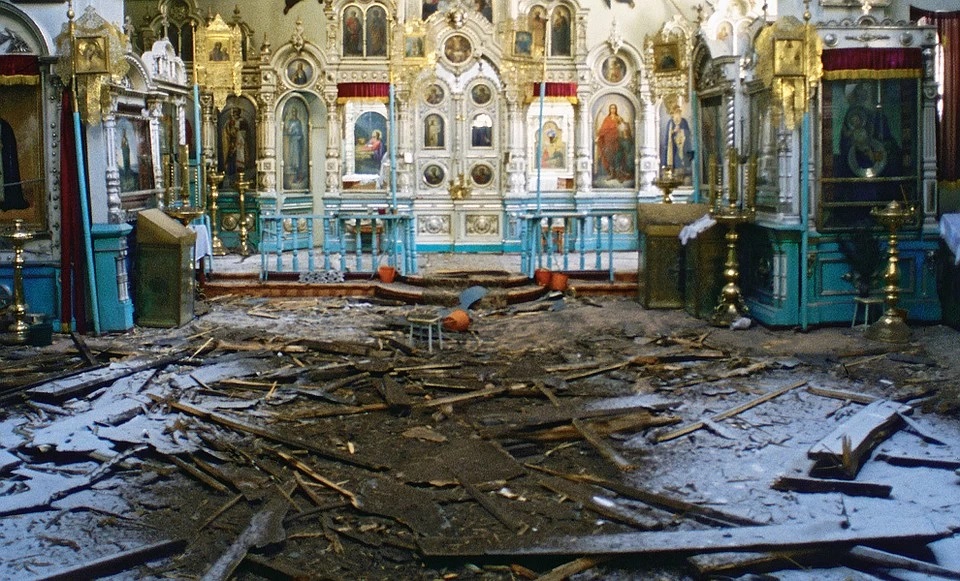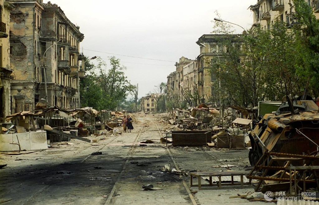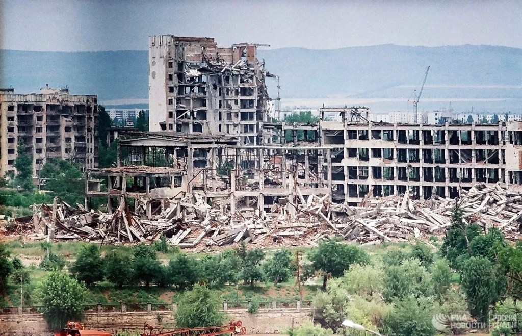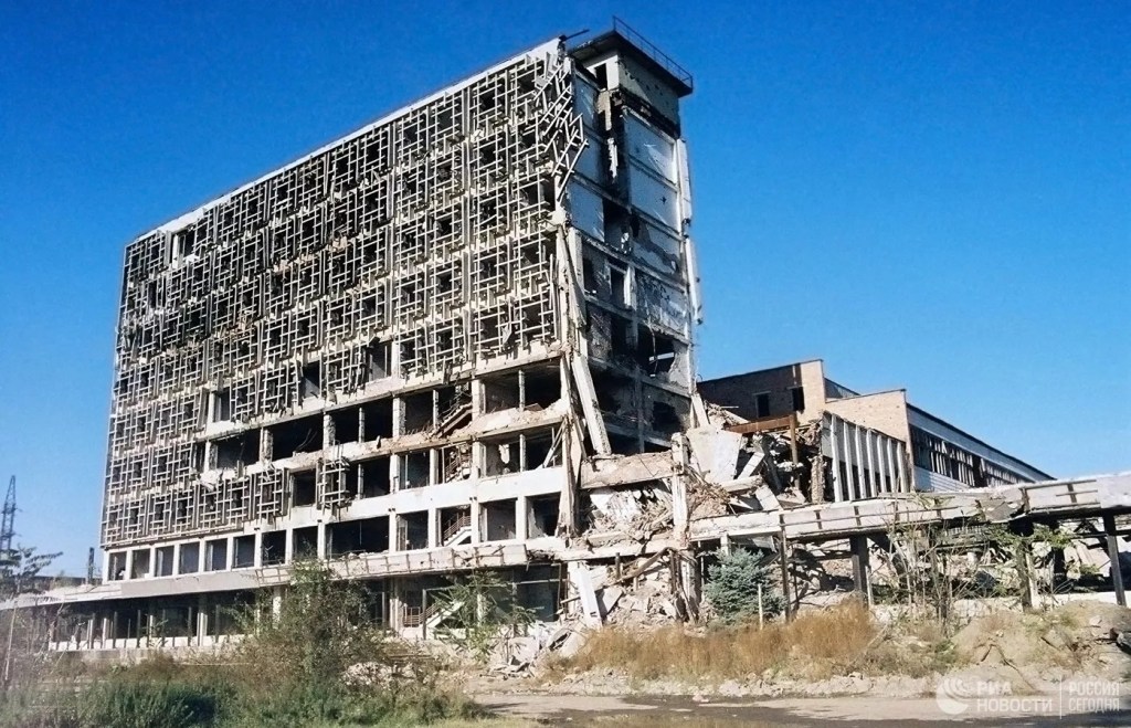 Quando i separatisti ebbero riconquistato Grozny, nell’Agosto del 1996, si trovarono padroni di una città in rovina. I resti del Palazzo Presidenziale erano talmente deteriorati che un suo ripristino era impossibile. Del resto la carenza di risorse economiche avrebbe comunque reso inattuabile la ricostruzione di un edificio così imponente. Le macerie rimasero così ammassate sul posto, ed il grande spiazzo dove un tempo sorgeva il rigoglioso giardino di rappresentanza divenne un pantano fangoso. Il degrado e la sporcizia si accumularono progressivamente, man mano che la stessa Repubblica Cecena di Ichkeria sprofondava nella corruzione e nell’anarchia. Nel Settembre del 1999 le truppe federali rientrarono in Cecenia, e Grozny tornò ad essere un campo di battaglia. Tra le vie del disastrato quartiere governativo si combatterono feroci battaglie, ma alla metà di Febbraio i reparti di Mosca riuscirono ad assicurarsi le sue rovine, e dalla fine del mese i combattimenti si spostarono nella parte meridionale della città. I resti del palazzo caddero definitivamente nelle mani dei russi, e furono presto sgomberati.