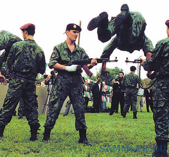 Basayev non ha il suo esercito. Era il comandante della Brigata Ricognizione e Assalto, che è l’unità d’elite dell’esercito ceceno. Ad oggi quella brigata, per tutti gli scopi pratici, è stata tolta dal servizio attivo e messa alle dipendenze del Comandante Supremo. Questo vuol dire che al momento l’unità non è acquartierata, ma in caso di guerra tornerà a formarsi. In questo senso non siamo soldati in servizio attivo. Questa brigata ha sostanzialmente cessato di esistere, ma si pone sotto l’autorità del Comandante Supremo in caso di guerra. La struttura attuale dell’esercito del Generale Raduev [Salman Raduev, Ndr.] invece, è una struttura autonoma. Ma questa è una conseguenza delle complicazioni generatesi nel periodo postbellico.
