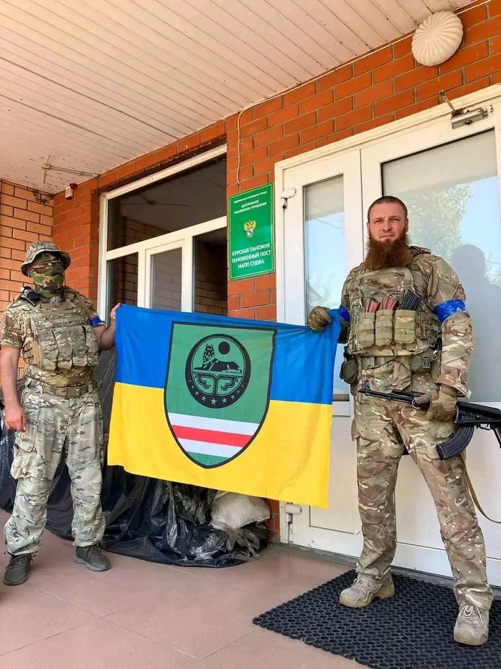 - The Chechen volunteers in Ukraine fight under two banners: the blue-yellow Ukrainian flag, and the green-white-red tricolor of Ichkeria.