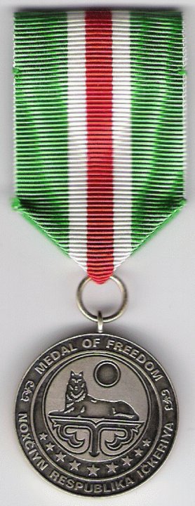 Established by the Chechen Republic of Ichkeria government in exile, it is awarded to Chechen citizens and foreigners considered to be fighters for human rights and freedom of speech, as well as justice in general. The first medal was awarded to Maria Bezelyuk in Lvov (Ukraine) on November 27, 2003. The most illustrious person to have received the Medal of Freedom was Anna Politkovskaya, who was awarded it at the Finnish Parliament in January 2005.