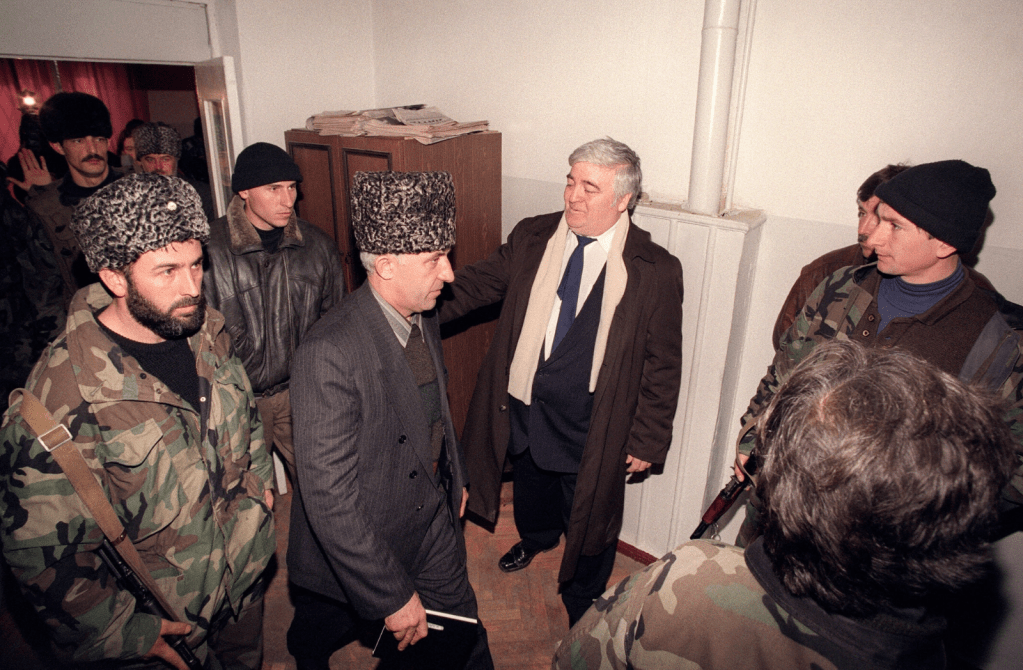 [5] Secondo quanto ricordò Aslan Maskhadov nel suo libro elettorale L’Onore è più caro della vita: Una volta, nel Gennaio 1995, Dudaev mi disse di essere d’accordo con Chernomyrdin di cessare le ostilità per 48 ore. “Prendi contatto con Babichev” mi disse “e concorda sulla rimozione dei cadaveri ed il salvataggio dei feriti gravi”. Contattai Babichev e gli ripetei che questa era la volontà di Dudaev e di Chernomyrdin. Babichev mi disse che mi avrebbe ricontattato entro 30 minuti. Poi mi chiamò e abbastanza seriamente, con la voce di un presentatore televisivo, disse: “Le condizioni sono le seguenti. Una bandiera bianca viene appesa al Palazzo Presidenziale, i capispalla vengono rimossi, le armi non vengono portate con voi, uscite con le mani alzate e dirigetevi verso Via Rosa Luxembourg…” Ho ascoltato con difficoltà queste chiacchiere, come i deliri di un pazzo, e moto educatamente l’ho mandato dove di solito ti mandano i contadini russi. A quanto pare neanche Babichev gradì la mia risposta, ed il fuoco più intenso di tutte le armi fu aperto sul Palazzo Presidenziale.