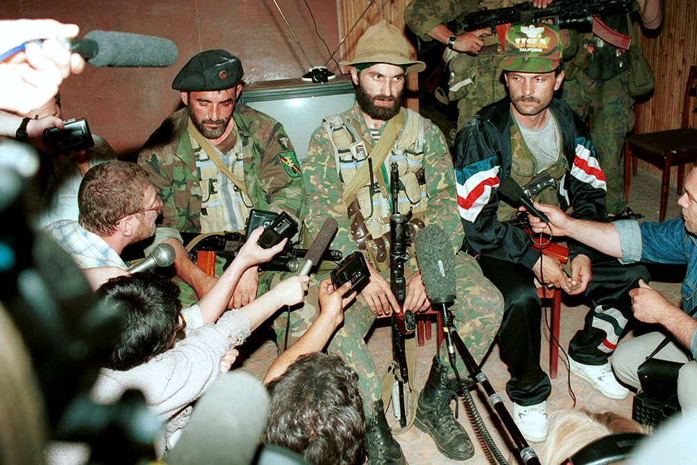 Salman Raduev (al centro) uno dei principali esponenti dell’ala nazionalista radicale, fu sempre contrario alla firma di un trattato di pace con la Federazione Russa, dichiarando la sua volontà di proseguire la guerra fino alla completa “liberazione” del Caucaso dal controllo russo.